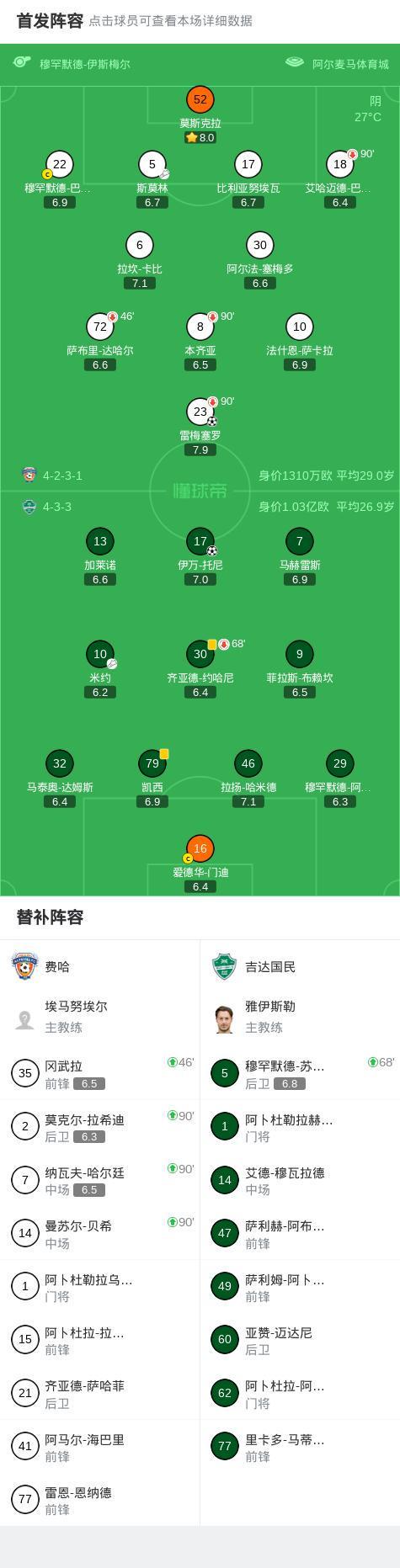 北京时间4月8日沙特阿拉伯联 联赛 第29轮,费哈主场对阵吉达国民。费哈雷梅塞罗破门。吉达国民伊万-托尼破门。最终比分费哈 1-1 吉达国民。