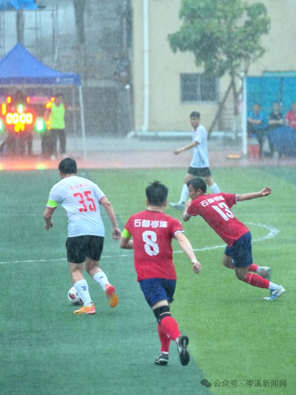 因雨势太大,比赛两度被迫暂停。双方球员趁机调整战术和状态,在重新比赛时继续加强进攻。岑溪市石都队配合默契,持续向对手施压,在禁区有多次射门机会,但未能将比分扩大。贵港市港南区队表现顽强,在速度和体能上保持优势,不断打防守反击,第85分钟时在禁区发起射门但被扑出。最终,1∶0的比分保持到终场。
